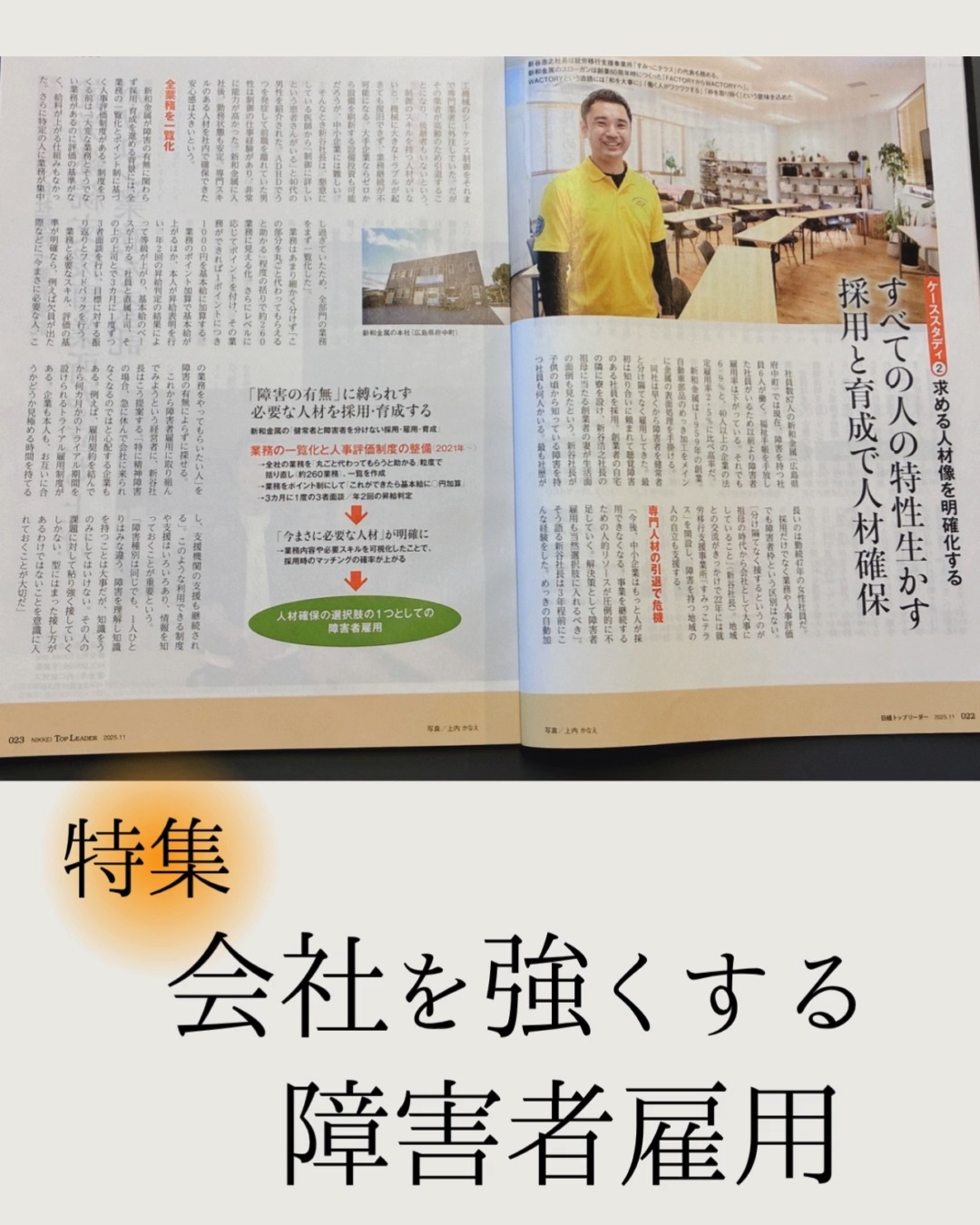 NIKKEI TOP LEADER 投稿日 2025年12月24日 著者 idegawa カテゴリー ブログ NIKKEI TOP LEADER 「会社を強くする障がい者雇用」特集 で紹介して頂きました😊 View this post on Instagram A post shared by 就労支援移行事業所 (@sumikko_terrace) この記事を書いた人 idegawa 記事一覧